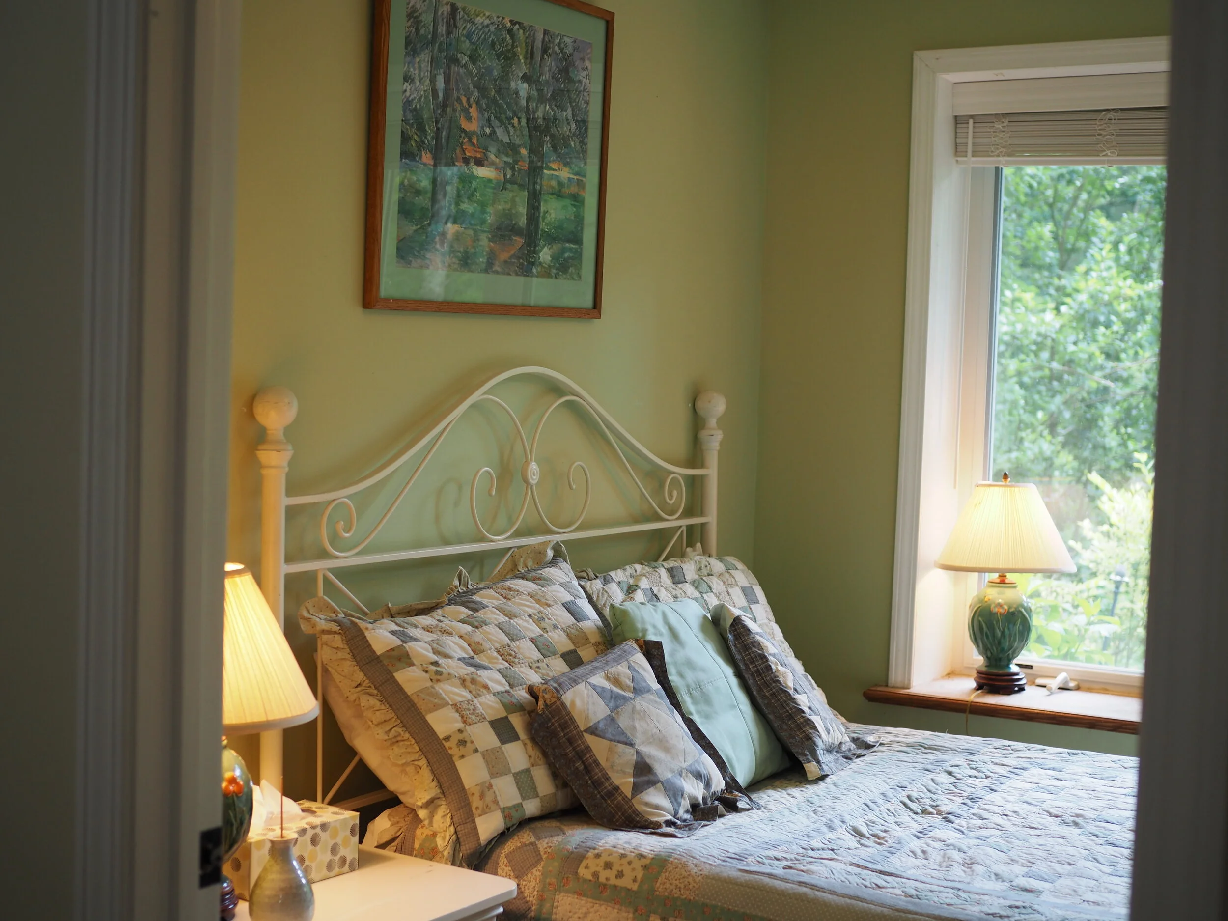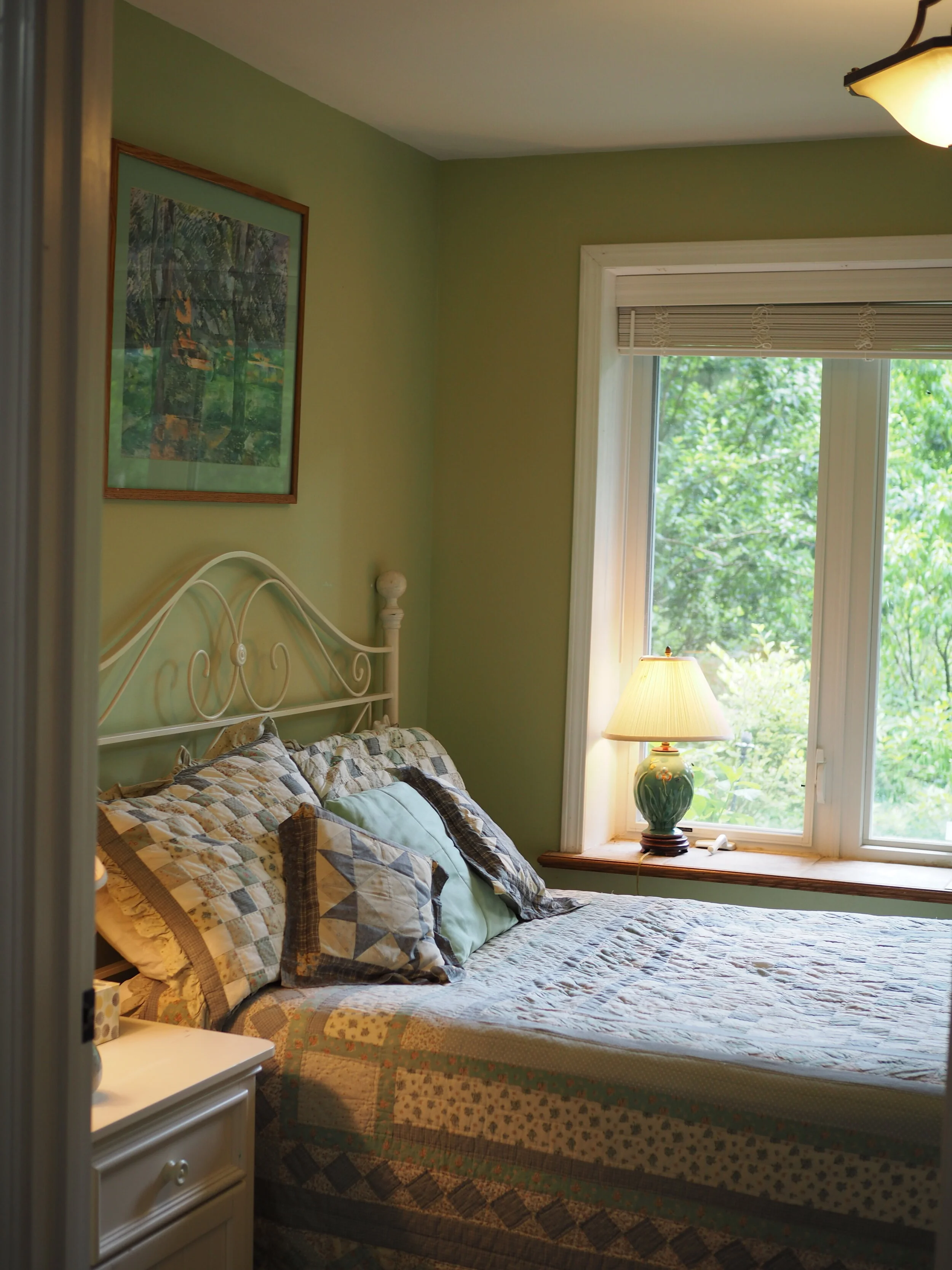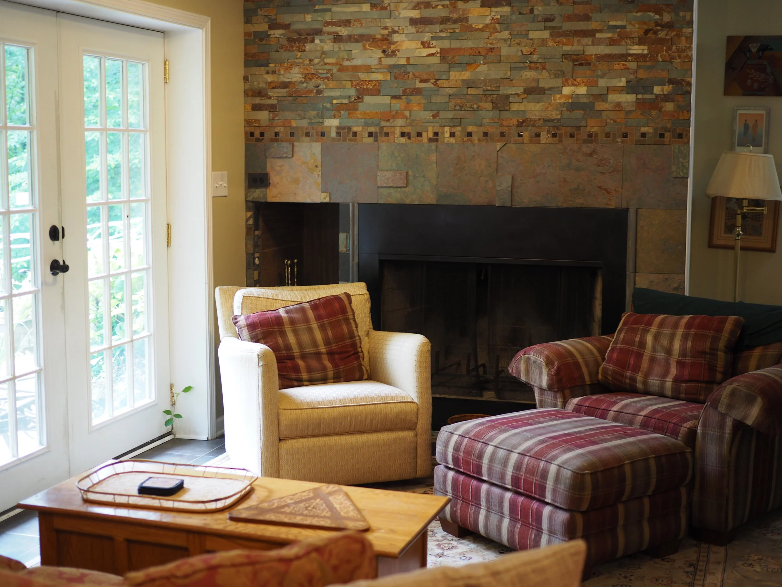 The garden cave apartment has a large open space with 2 sets of French doors. One pair takes you out to a covered slate patio and the other one to a sunny space in the garden. It has a full kitchen and a large butcher block table which seats 4. The earth toned stone fireplace is operational and cozy chairs and couch enable you to kick back and look out on verdant surroundings. The private bedroom has large windows looking out onto the gardena and offers a great quality double bed and lots of places to store your belongings. The custom tiled bathroom has a full sized tub and shower and a lovely artisan topaz glass sink. A large walk in closet and laundry room add to the units connivence. Large folding tables are available for those with creative projects or who need multiple work spaces. Wifi and printers available for those that require it. The owner lives up the spiral staircase and composes music, paints, and has a contemplative life, guests who like quiet will appreciate this setting. View our House Guidelines for more information.